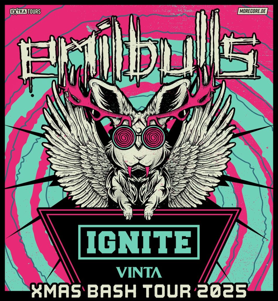 Wer kennt ihn nicht, den legendären X-Mas-Bash der Emil Bulls in München, alljährlich im Backstage Werk. Auch dieses Jahr, am 20. Dezember 2025, steigt dort wieder eine große Sause. Aber genauso traditionell war der Termin ratzfatz ausverkauft. Wie gut, dass sich die Bulls nicht lumpen lassen und am 19. Dezember 2025 eine Zusatzshow nachlegen! Freuen darf man sich an beiden Terminen zusätzlich auf Ignite und Vinta. Neben den Songs des aktuellsten Albums „Love Will Fix It“, gibt es sicherlich auch das eine oder andere Perlenstück aus der langjährigen Karriere zu hören – und natürlich die Hits. Man darf gespannt sein! Wer also Interesse hat, sollte nicht mehr allzu lange zögern…