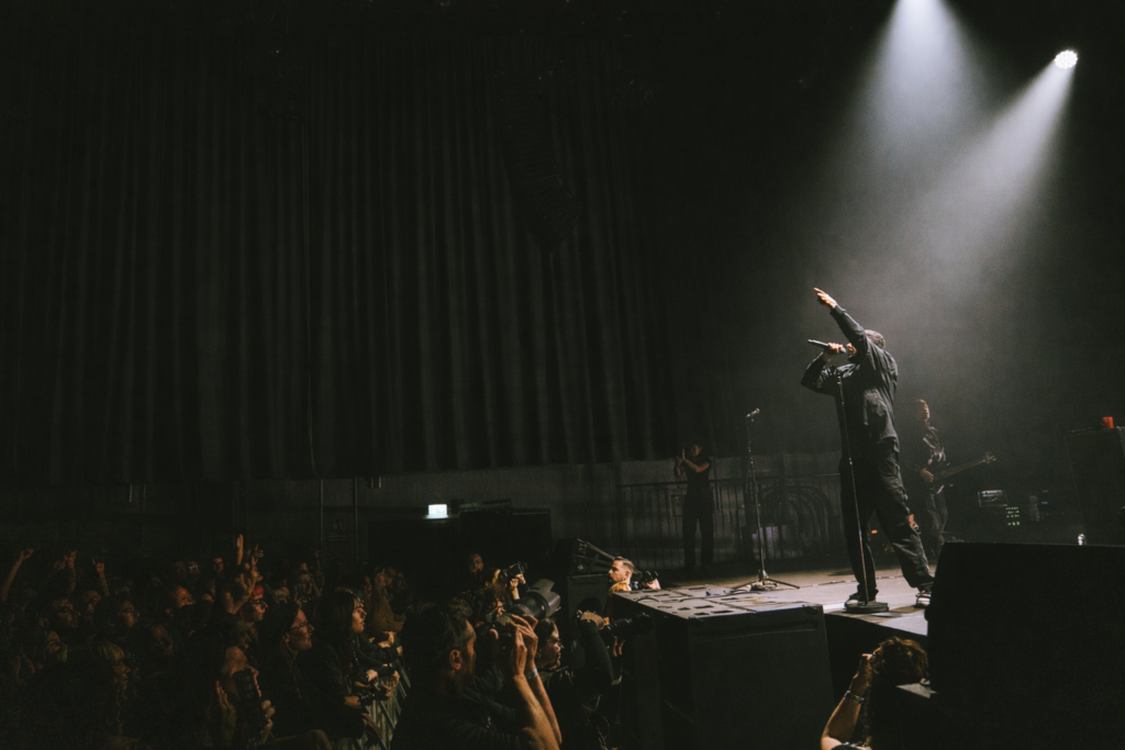 Das gesamte neue Album INERTIA wird live gespielt, kompromisslos, laut, politisch und emotional. Was bereits auf der Platte ein Inferno aus Emotionen bereithält, wächst live noch einmal über sich hinaus: Das Zusammenspiel aus Benjamin und seinen Bandkollegen ist elektrisierend und entfesselt eine packende Dynamik im Kesselhaus, die kaum gebändigt werden kann. Die Show ist geprägt von einer immensen Energie, auf der Bühne wie im Publikum. Bass und Gitarre drücken brutal, die Riffs sind massiv, die Chemie zwischen den Bandmitgliedern explosiv. Bei „Overdose“ öffnen sich Kreise im Publikum, ein Circle Pit entsteht, später steht die Band selbst mitten in der Crowd, während sich um sie herum der Moshpit dreht: Ein starkes Bild für Nähe und Gemeinschaft, das der Sänger immer wieder anpreist.