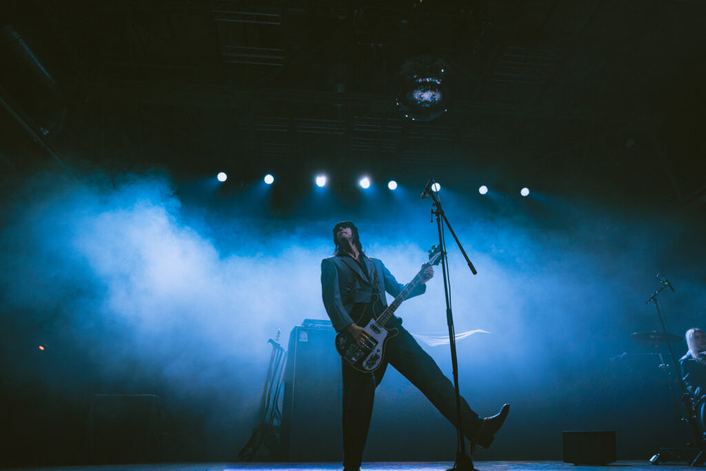 Ansagen gibt es allerdings kaum. Zu Beginn bedankt sich Yates, ruft zwischendrin noch die Menge zum Eskalieren auf, aber konzentriert sich sonst auf das Singen und Springen. Zwischen den Songs pausieren die Musiker*innen gerne einmal 1-2 Minuten in Dunkelheit und Stille, wohl auch, um selbst kurz durchatmen zu können und ihre Instrumente neu zu stimmen, dramaturgisch nimmt das jedoch etwas Tempo raus. Aber es gelingt Turnstile, bereits mit dem Anfang des jeweils folgenden Songs wieder die Masse auf ihrer Seite zu haben. Bemerkenswert ist sicherlich, dass die Amerikaner ihre Wurzeln nicht vergessen haben: Neben überraschend vielen alten Liedern auf der Setlist, hüpfen auch Massen an Münchner*innen beim abschließenden „Birds“ auf die Bühne. Nicht einmal die größten Hallen und Barrieren können eine Hardcore-Show aufhalten.