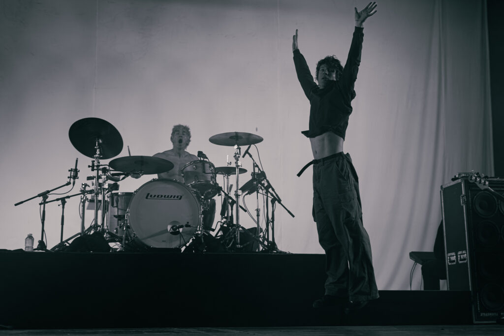 High Vis starten bereits um 19 Uhr und bringen das Münchner Publikum beachtlich in Stimmung für den Abend. Das Zenith ist gut gefüllt, und im vorderen Bereich wird auf einen Wellenbrecher verzichtet. Langsam lässt sich bereits erahnen, welcher Hexenkessel sich hier später noch zusammenbrauen wird. Bei The Garden ist davon aber noch nichts zu spüren. Das Duo aus Amerika startet mit Rap, der nur mit skeptischen Blicken bedacht wird, bevor sie an die Instrumente wechseln und mit Drums und Gitarre ihren experimentellen Rock-Stil zwischen Hardcore und Punk zum Besten geben. Anstandsapplaus ist das Maximum, das die Münchner*innen hier bereit sind zu geben; sowohl die Musik als auch der Auftritt sind einfach nur nervenraubend.